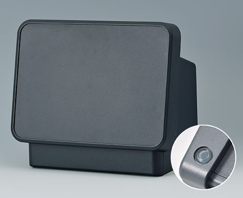 - Bedienfront mit vertieft liegendem Feld zum Schutz der Folientastatur oder großformatiger Displays 11,5" - 14" (29 cm - 35 cm); außerdem plane Fläche für frontseitige Bedienelemente und Anschlüsse